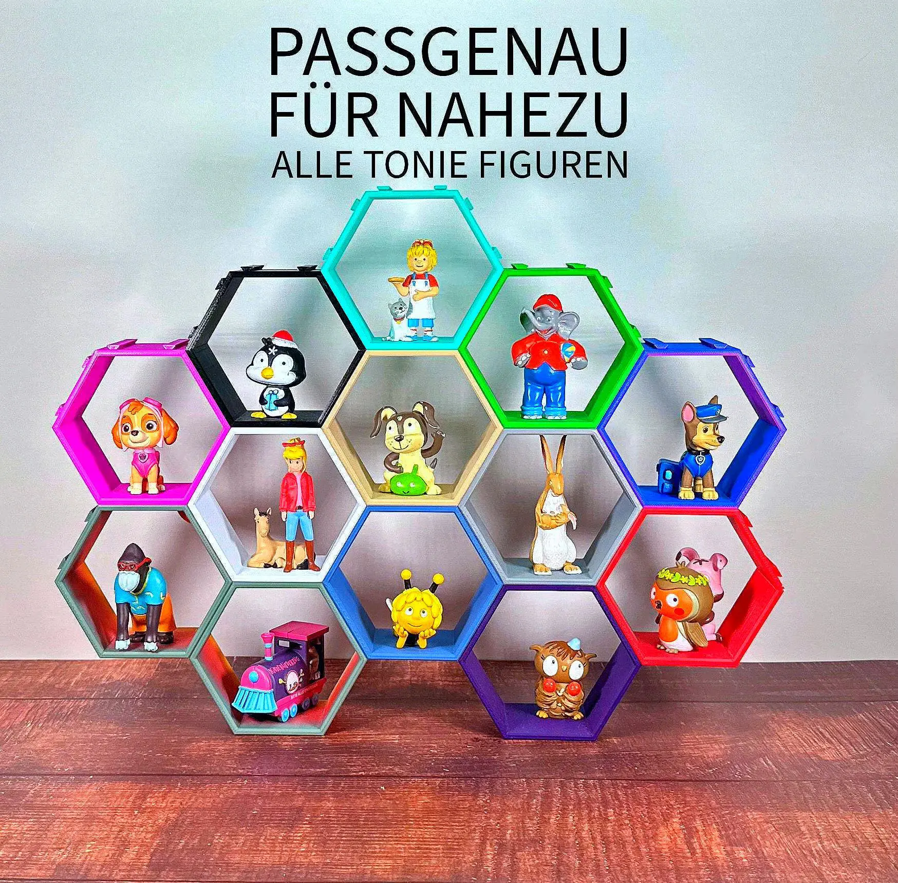 Präsentiere die Lieblingsgeschichten deiner Kleinen stilvoll! Unsere Tonie-Wabe im Trapez-Design aus 3D-Druck bietet Platz für 1 Tonie-Figur. Integrierte Metallplatte hält die Figur sicher an ihrem Platz.